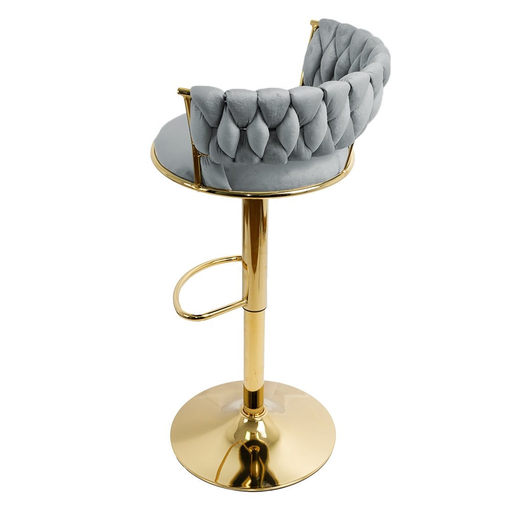 Cu un design versatil, acest scaun dispune de un suport de picioare elegant de culoare aurie, adăugând o notă rafinată și completând aspectul general al scaunului. Înălțimea întregului scaun poate fi reglată între 77 și 97 cm, oferind flexibilitate și potrivire pentru diverse mese sau blaturi de bar.