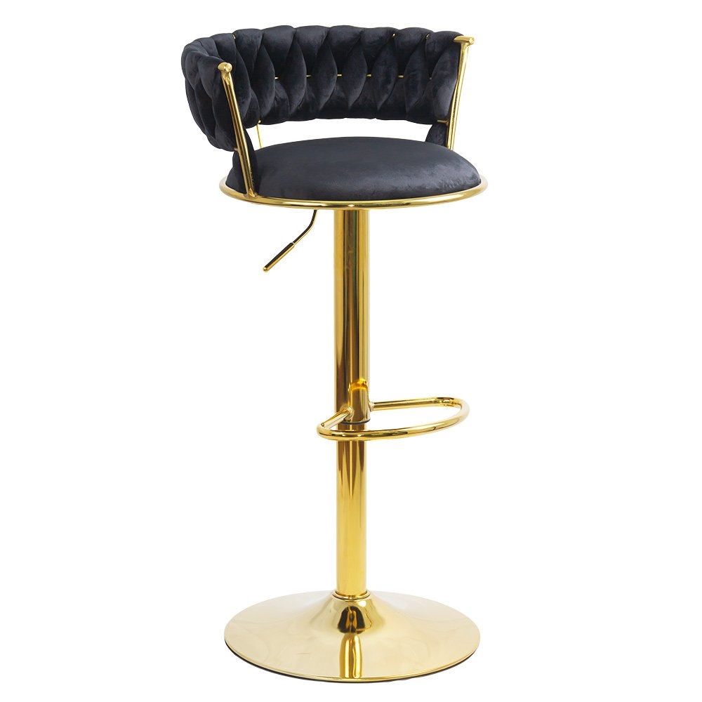 Scaun bar reglabil pe înălțime, rotativ, suport picioare, catifea, negru, ABS 118