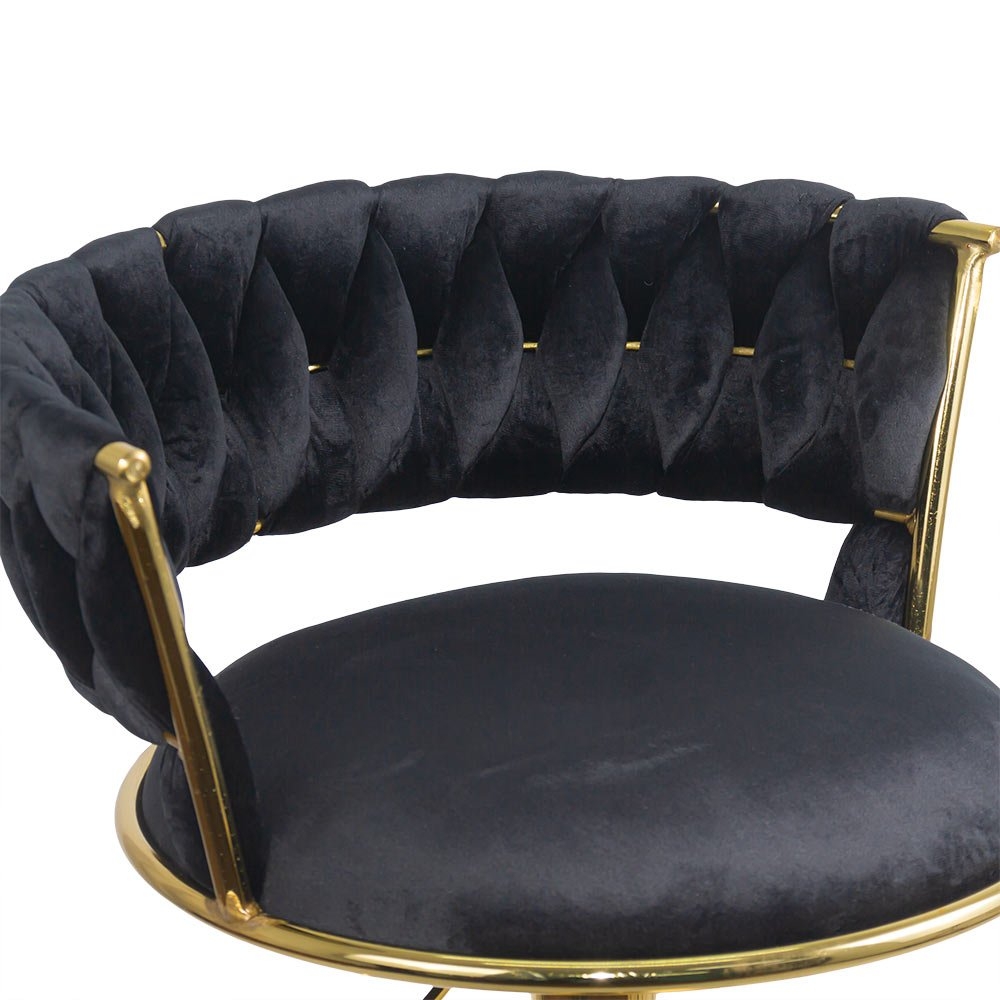 Tapițeria din catifea neagră este gândită nu doar pentru a impresiona vizual, ci și pentru a asigura o experiență de ședere confortabilă și relaxantă. Umplutura de burete cu densitate mare menține forma și oferă suport pe termen lung, indiferent de frecvența utilizării. Spătarul înalt și ergonomic oferă susținerea necesară pentru spate, fiind conceput pentru sesiuni prelungite de conversație sau relaxare.