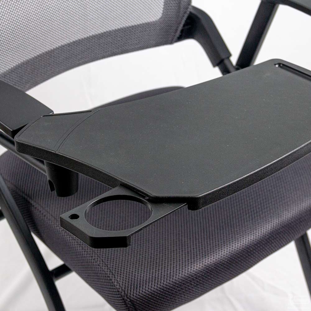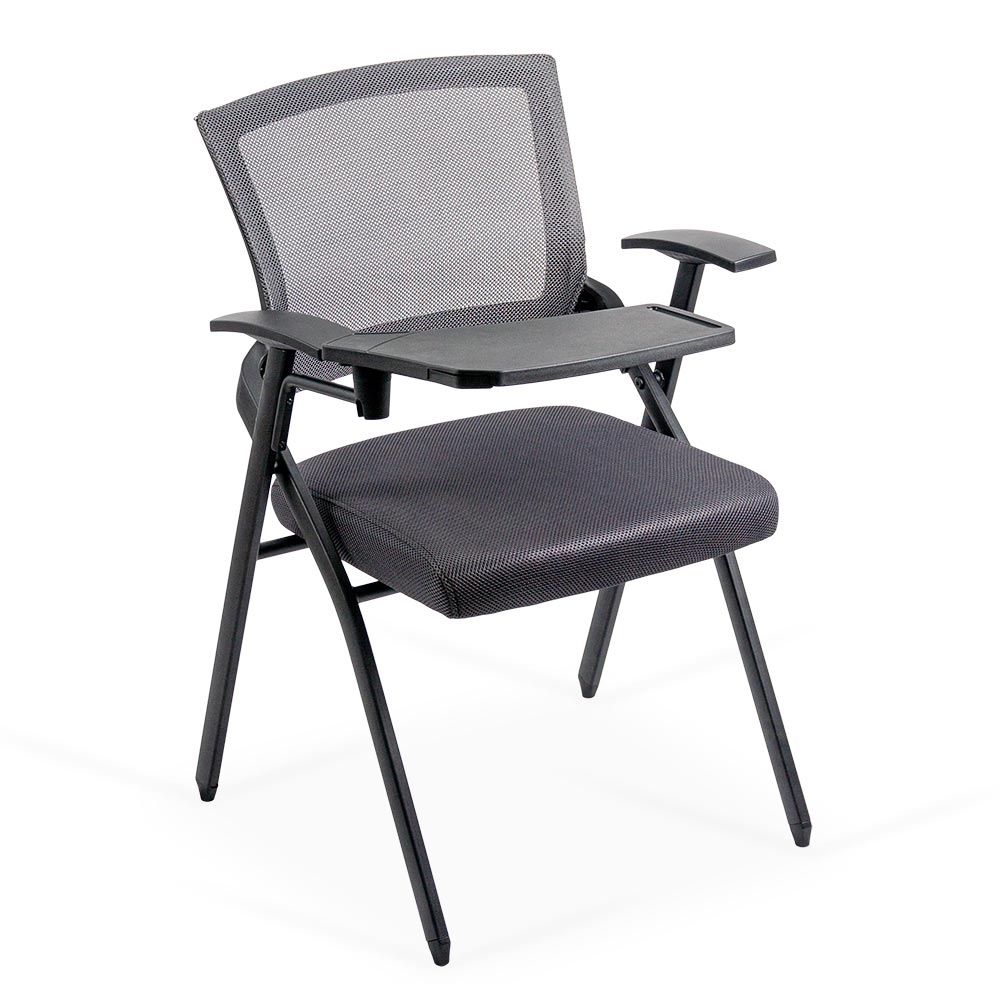 Echipat cu o măsuță rabatabilă din polipropilenă, scaunul oferă un spațiu suplimentar pentru notițe, laptop sau alte instrumente esențiale. Măsuța poate fi ajustată sau ridicată în funcție de necesități.