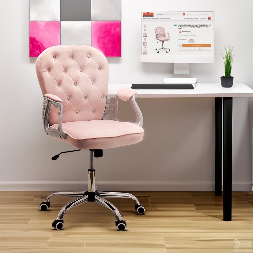 Scaunul de birou OFF 437 roz combină luxul, confortul și stilul într-un mod excepțional, fiind perfect pentru zilele lungi petrecute la birou. Oferind tot ce aveți nevoie pentru o experiență de lucru productivă și plăcută, acest scaun este îmbrăcat într-o catifea de un roz subtil, aducând o notă vibrantă și o senzație plăcută la atingere în decorul biroului dumneavoastră.