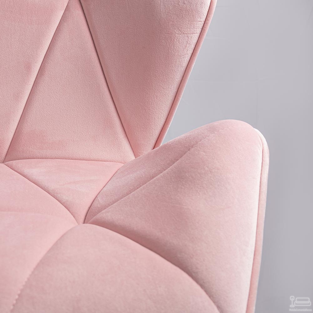 Scaunul de birou OFF 643 roz aduce un plus de eleganță și confort oricărui spațiu de lucru. Tapițeria din catifea roz oferă un aspect rafinat și plăcut la atingere, în timp ce baza metalică neagră asigură stabilitate și durabilitate. Rolele gumate protejează podelele și permit mobilitatea ușoară.
