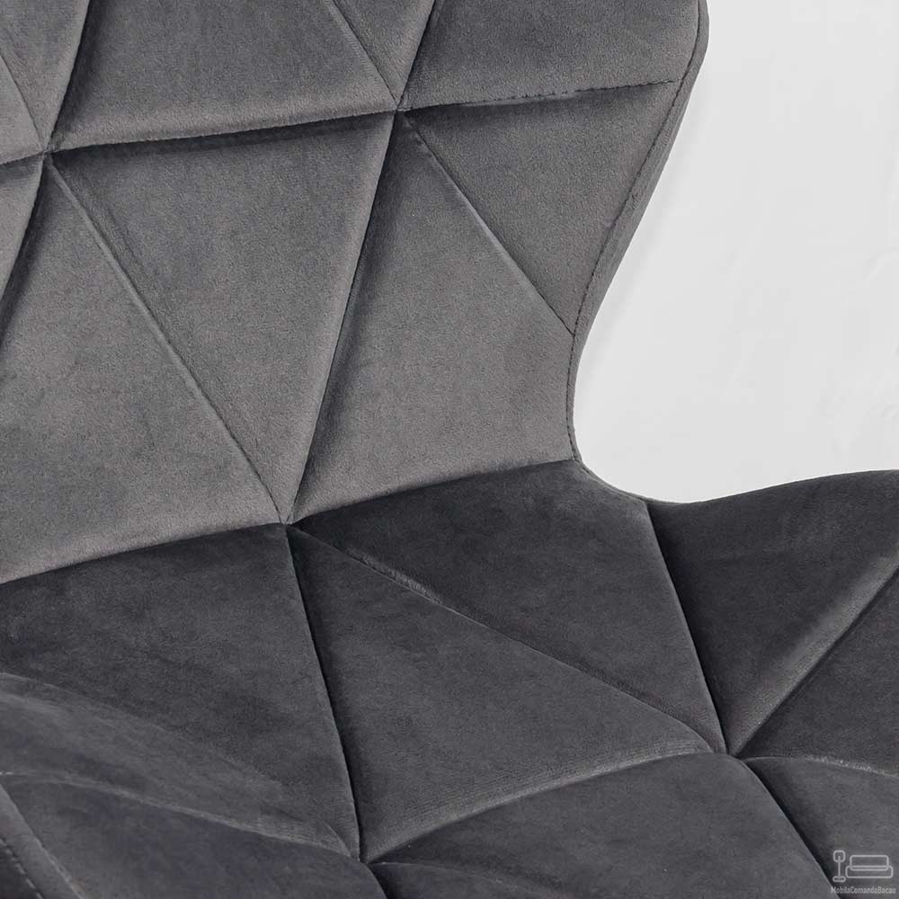 Scaunul de birou OFF 334, tapițat cu catifea gri, este o piesă de mobilier ce îmbină rafinamentul cu eficiența, fiind conceput pentru a îmbunătăți experiența oricărui spațiu de lucru. Stilul său modern și culoarea sobră se integrează armonios în decoruri diverse, de la cele minimaliste la cele mai elaborate.