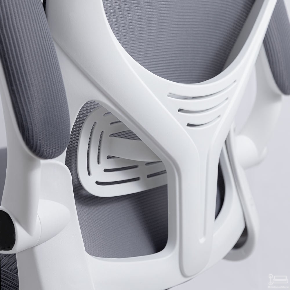 Pentru scaunul office s-a folosit material din plasa, astfel meshul spatarului este respirabil si elastic, ceea ce-l face foarte confortabil. Sezutul este confectionat din burete gros de aproximativ 7 cm grosime, facilitand sederea pentru o perioada indelungata.