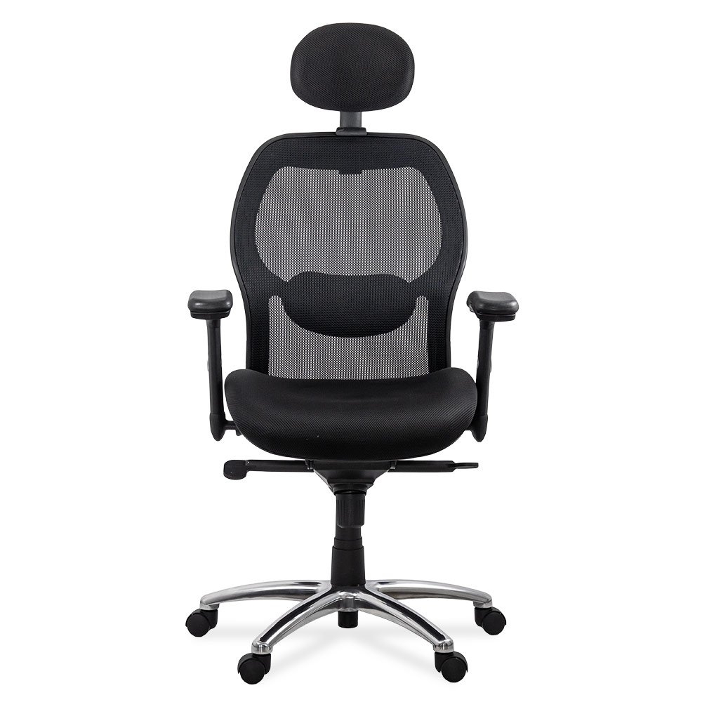Spătarul din plasă bine conturat, de culoare neagră, oferă ventilație și stil. Suportul lombar reglabil asigură susținere suplimentară pentru partea inferioară a spatelui, contribuind la reducerea oboselii.
