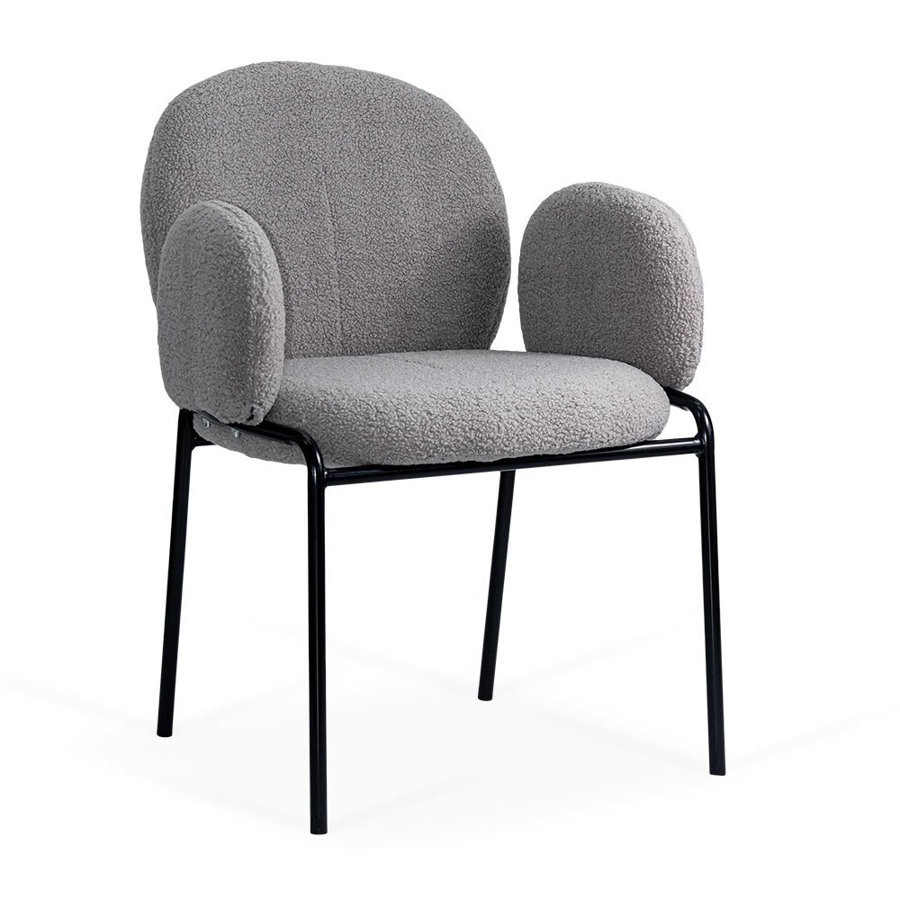 Scaunul gri BUC 281 imbracat in tapiterie boucle transforma orice masa intr-un moment placut. Culoarea gri adauga delicatete si stil, iar cadrul metalic asigura sustinere stabila. Este perfect pentru interioare moderne sau vintage cu accente elegante.