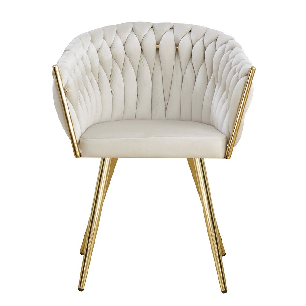 Cadrul metalic cu finisaj auriu ofera rezistenta si un efect vizual elegant. Picioarele din otel includ dopuri reglabile in partea frontala. Acestea permit ajustarea usoara pe suprafete mai putin uniforme. Structura este testata pentru o greutate maxima de 120 kg, ceea ce garanteaza siguranta in utilizare zilnica.