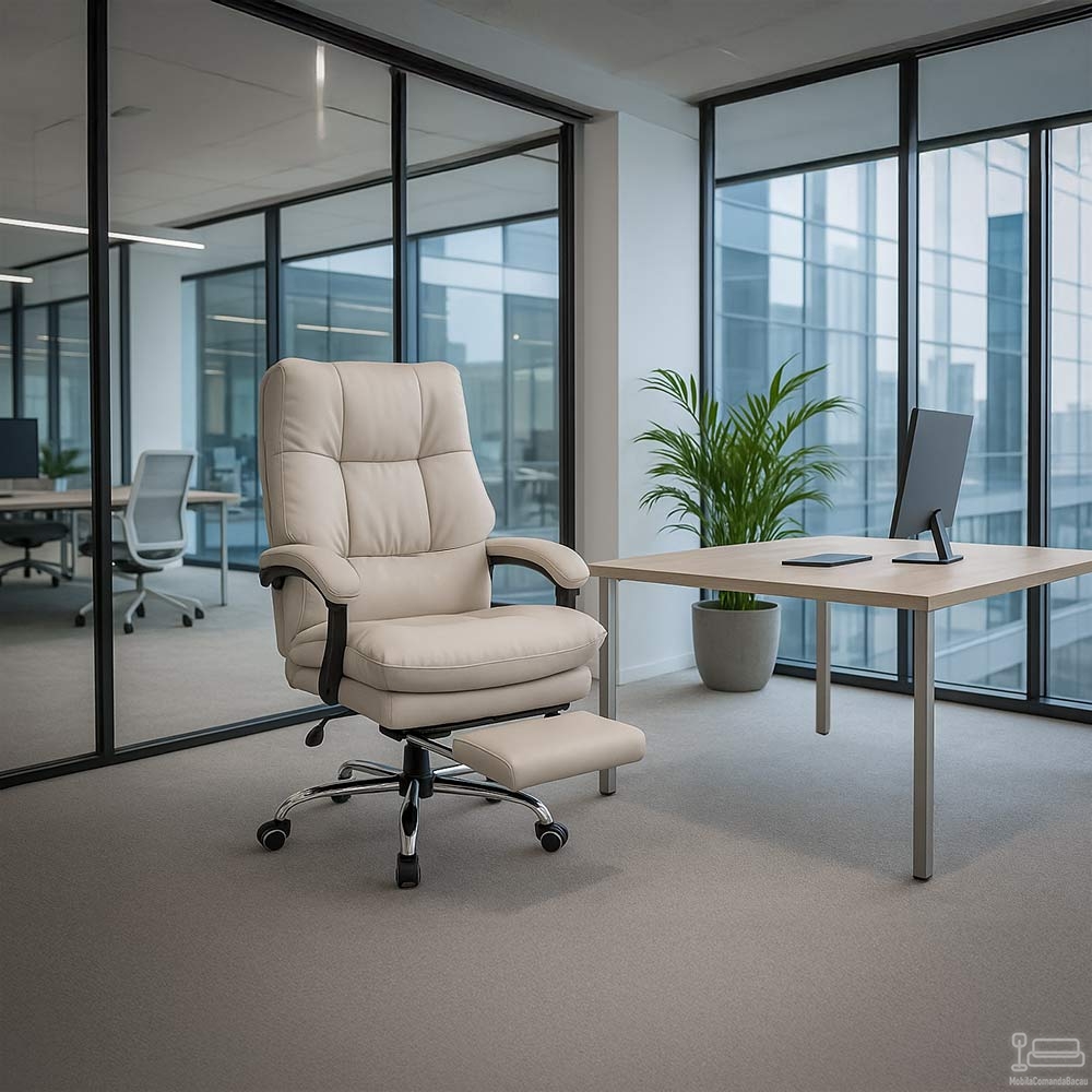 Ai nevoie de relaxare si stil la birou? Scaunul directorial OFF 417 in varianta bej ofera un echilibru perfect intre eleganta si confort. Realizat din piele ecologica moale, dar rezistenta, acest scaun se remarca prin designul ergonomic si detaliile inteligente. Este ideal pentru zilele lungi de lucru, dar si pentru momentele de odihna.