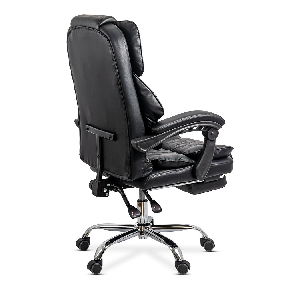 În plus, scaunul este dotat cu un suport de picioare extensibil, perfect pentru momentele de relaxare, și o bază din metal cromat cu cinci puncte de sprijin ce asigură stabilitate și mobilitate ușoară. Înălțimea totală a scaunului poate fi ajustată între 105 și 113 cm, iar șezutul între 43 și 51 cm, permițând adaptarea la diverse înălțimi ale birourilor.
