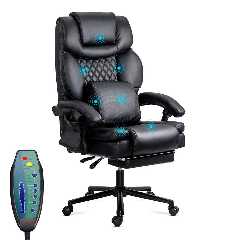 Transformă-ți spațiul de lucru într-o oază de relaxare și confort cu scaunul directorial cu masaj OFF 935 negru. Acest scaun premium din piele ecologică, cu suport picioare și baza metalica rezistenta, oferă atât eleganță, cât și funcționalitate avansată, pentru ca fiecare zi să fie una productivă și relaxantă.