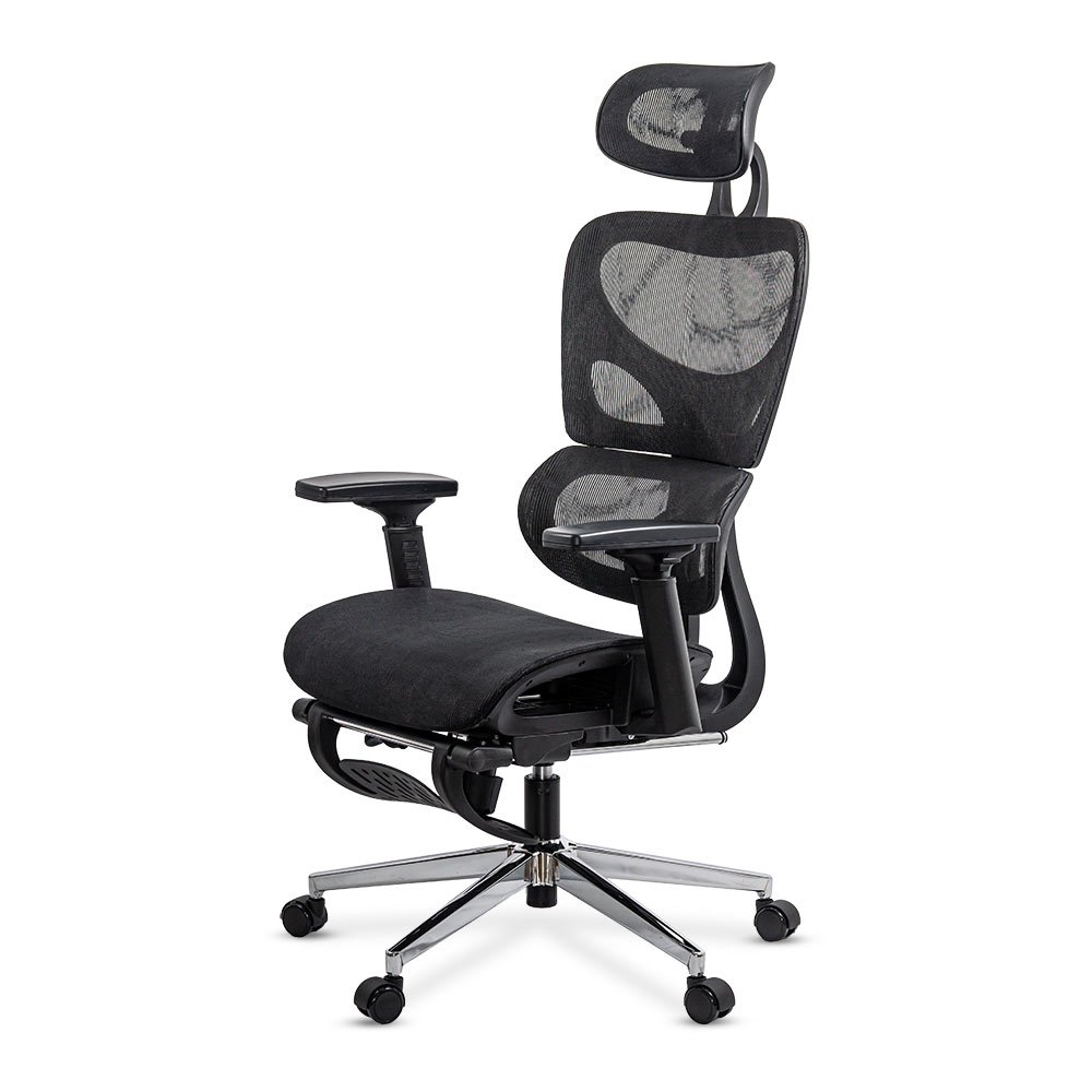 Inaltimea scaunului este reglabila cu 8 cm, astfel sezutul poate fi pozitionat intre 49 cm si 57 cm. Tetiera mare este reglabila pe inaltime 7 cm si se roteste 45 grade fata/spate. Cotierele sunt deasemenea reglabile 3D: se pot ridica 7 cm, roti si deplasa inainte si inapoi in interval de 6 cm. Inaltimea scaunului este deasemenea reglabila, acesta ajungand la o inaltime maxima de pana la 128 cm, iar cu functia de inclinare 90-115 grade si suportul de picioare retractabil va puteti relaxa chiar la birou. Nu in ultimul rand, sezutul culiseaza fata – spate, oferind astfel confortul esential pe parcursul intregii zile.