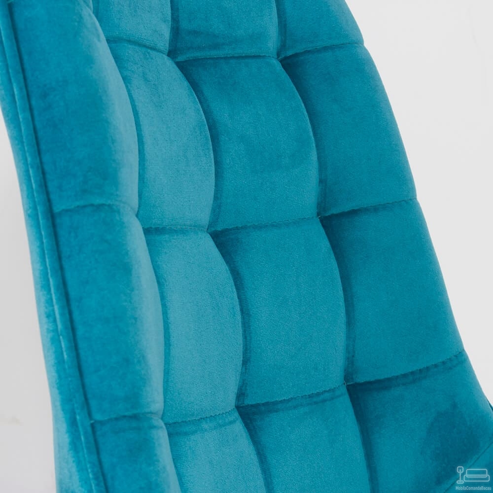Catifeaua fină și plăcută la atingere, în nuanța captivantă de turcoaz, oferă un plus de rafinament fiecărui interior. Rezistentă la uzură, tapițeria asigură durabilitate, în timp ce căptușeala din burete de mare densitate garantează un confort optim în timpul meselor lungi sau a momentelor de relaxare.