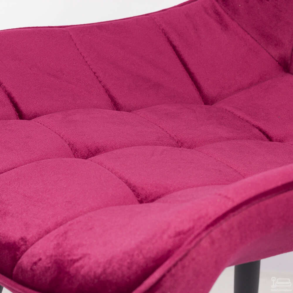 Cu o textură moale și delicată, materialul catifelat din care este confecționat scaunul BUC 206 nu este doar o alegere estetică, ci și una practică. Rezistența sa la uzură și calitatea superioară îi conferă o durabilitate sporită, asigurând că vei bucura de acest scaun de living timp îndelungat. Picioarele subțiri din metal sunt vopsite într-o nuanță potrivită de visiniu, adăugând un plus de eleganță și punând în valoare curburile delicate ale scaunului.