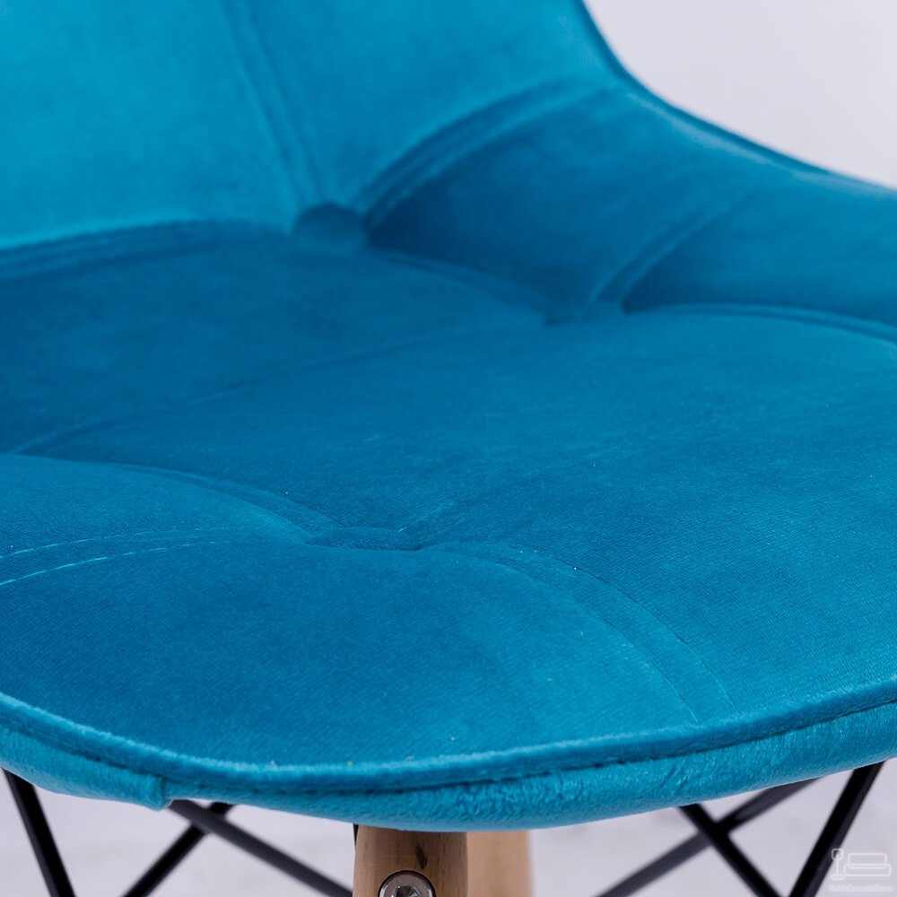 Cu o suprafață moale din catifea de un albastru adânc, acest scaun nu este doar o piesă de mobilier, ci și o operă de artă modernă. Suprafața catifelată adaugă o notă de lux, iar picioarele de lemn de fag conferă un aspect retro, perfect echilibrat cu un stil modern.
