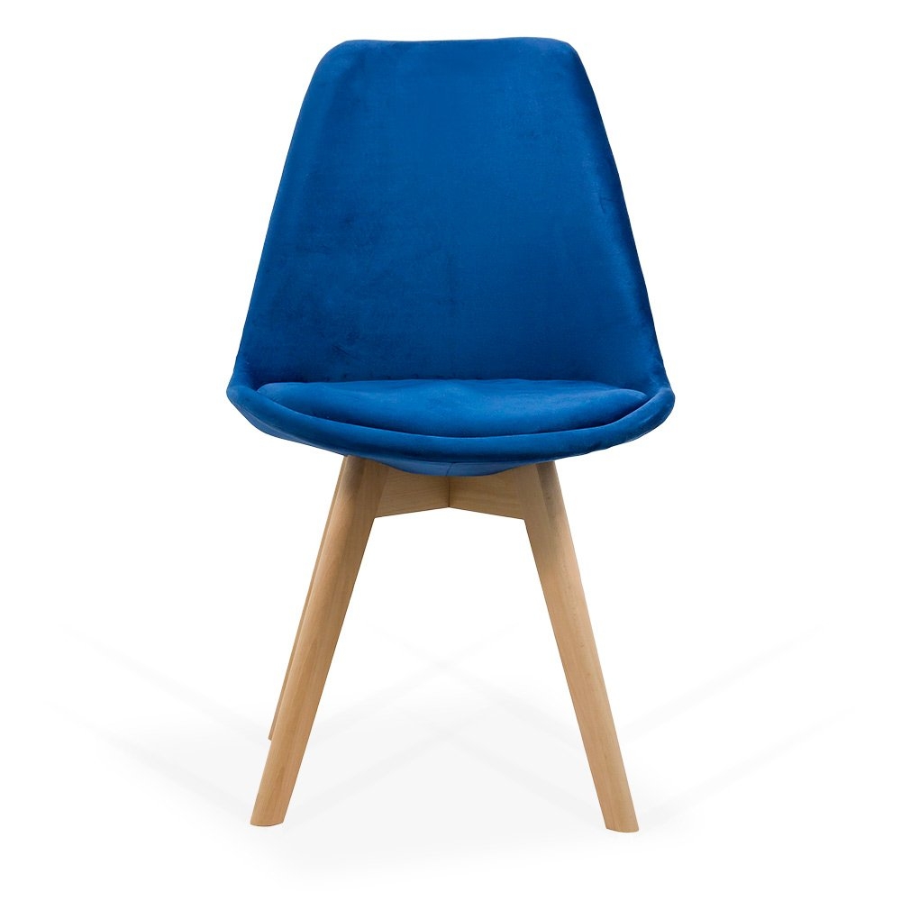 Realizat din lemn și acoperit cu velur albastru, acest scaun de 50x54x82 cm este un element de mobilier minunat care se potrivește cu ușurință oricărei încăperi.