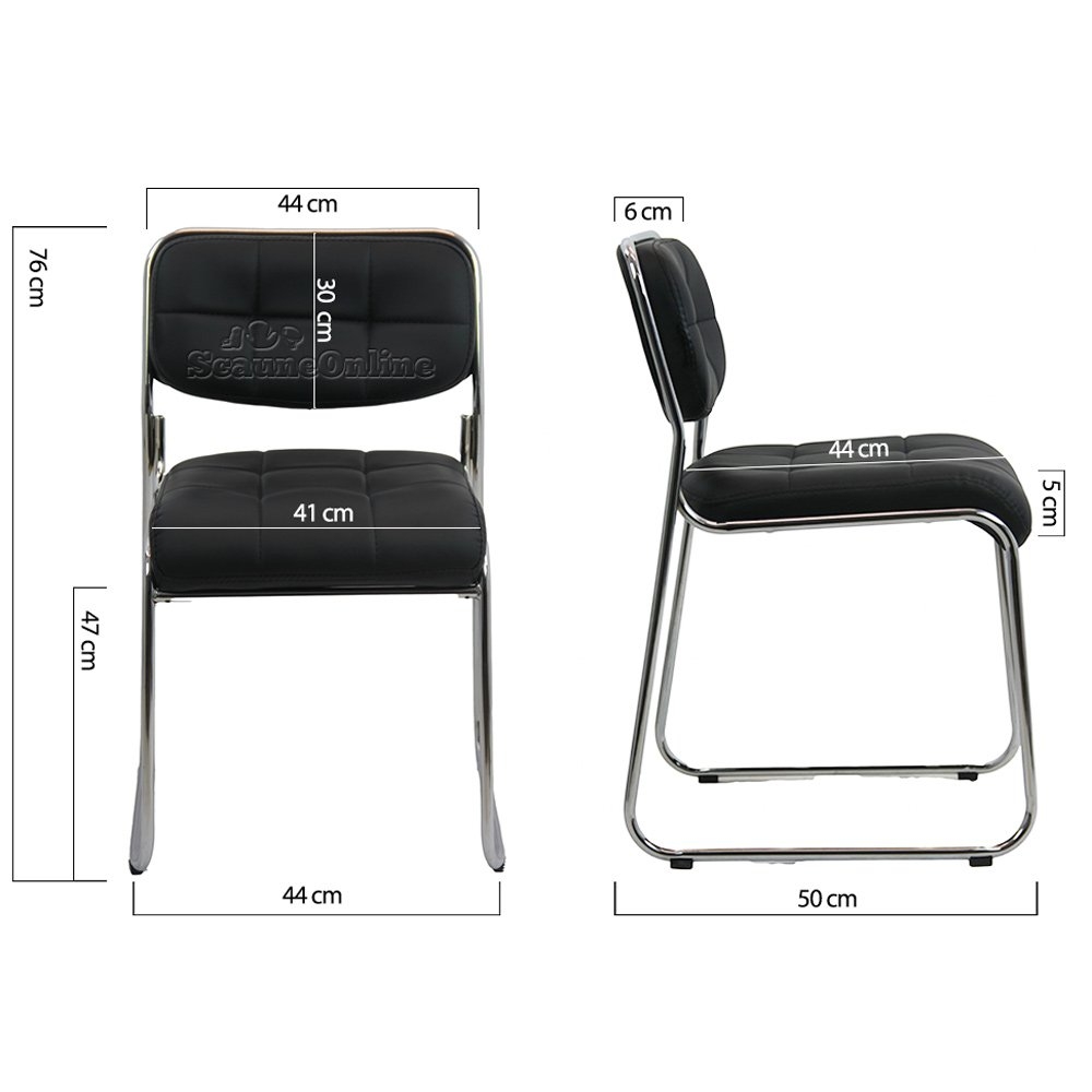 Indiferent dacă le folosiți în sălile de așteptare ale biroului, în sălile de conferințe sau chiar acasă, în sufragerie sau bucătărie, aceste scaune se adaptează perfect în orice mediu, aducând un strop de eleganță și confort în fiecare loc. Cu dimensiunile sale ergonomice, acest model are o înălțime totală maximă de 76 cm, cu un șezut cu adâncimea de 44 cm și o lățime de 41 cm, amplasat la o înălțime de 47 cm față de nivelul solului.