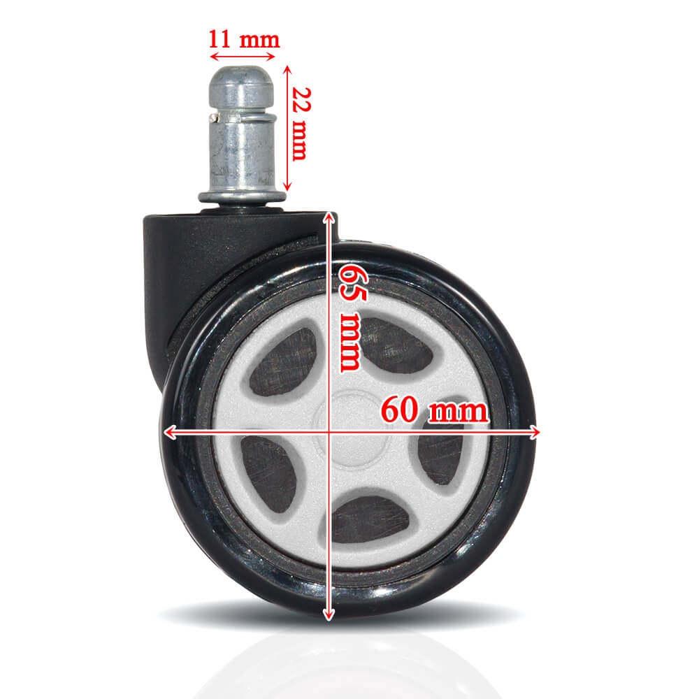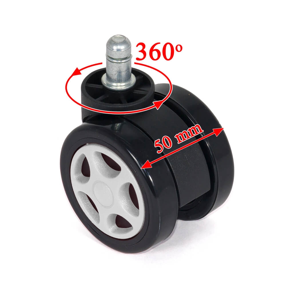 Cu un înveliș gumat de culoare neagră, aceste roți nu doar că adaugă un plus de stil scaunului tău de gaming, dar și îmbunătățesc aderența pe orice tip de podea. Fie că este vorba de parchet, gresie sau covor, rotile asigură o mișcare fluidă și fără zgomot, protejând în același timp suprafețele delicate de zgârieturi și uzură.